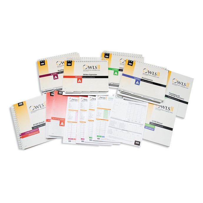 OWLS-II COMPREHENSIVE LC/OE AND RC/WE HAND-SCORED KIT covers all 4 Scales and Includes: 10 LC/OE Record Forms, LC Easel, OE Easel, LC/OE Manual, 10 RC/WE Record Forms, 10 WE Response Booklets, RC Easel, WE Easel, RC/WE Manual, 10 Profile Forms, and Foundations of Language Assessment, all in an attractive carrying case. (©2012)