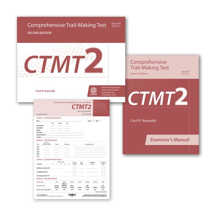 The Comprehensive Trail-Making Test–Second Edition (CTMT2) is a standardized assessment that uses five visual search and sequencing tasks, called trails, that are heavily influenced by attention, concentration, resistance to distraction, and cognitive flexibility (or set-shifting). The basic task of the trails is to connect a series of stimuli (numbers, expressed as numerals or in word form, and letters) in a specified order as quickly as possible. The tests primary uses include the evaluation and diagnosis of brain injury and other forms of central nervous system compromise. Other purposes include detection of frontal lobe deficits; problems with psychomotor speed, visual search and sequencing, and attention; and impairments in set shifting along with monitoring recovery from concussion and other forms of TBI. Neuropsychologists; clinical, counseling, school, and pediatric psychologists; occupational therapists; speech and language professionals; physical therapists; and others interested in objective testing of functionality in brain–behavior relationships would all benefit from using the CTMT2.