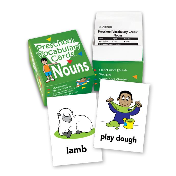 Teach 240 high-frequency, age-appropriate nouns from eight categories: