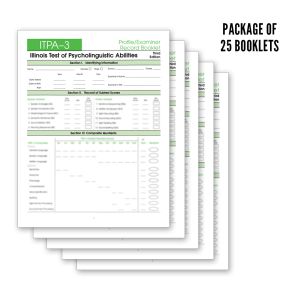 Complete ITPA-3 Kit Includes: Examiner's Manual, 25 Profile/Examiner Record Booklets, 25 Student Response Booklets, and online access to audio files, all in a sturdy storage box. (©2001)